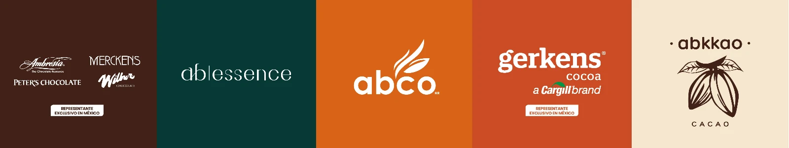 Empresa mexicana con 30 años de historia. Creadores de abkkao® y ab | essence® Fabricante de sabores y representantes exclusivos en México de Cargill Cacao (Gerkens®) y Chocolate (Peters ®, Merckens®, Ambrosia®, Wilbur®)